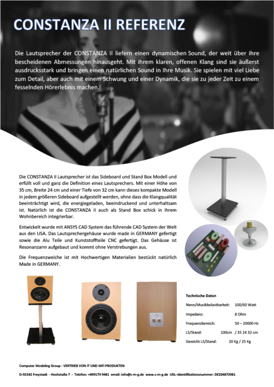 Die CONSTANZA Lautsprecher Serie wird nur auf Bestellung gefertigt. Dies ist kein Massenprodukt.